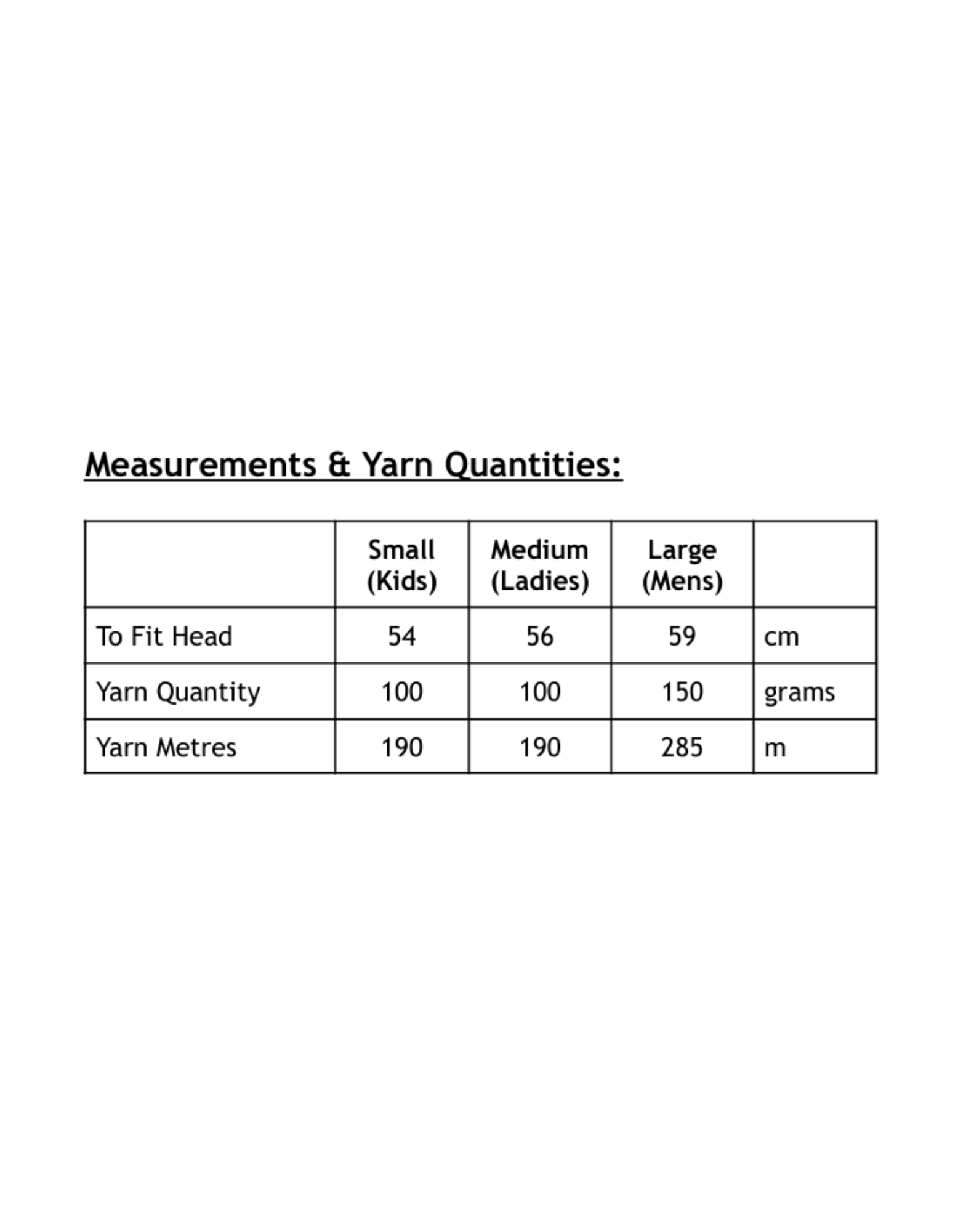 Size Measurements & Yarn Quantities Required: Please keep scrolling (it is down the bottom).